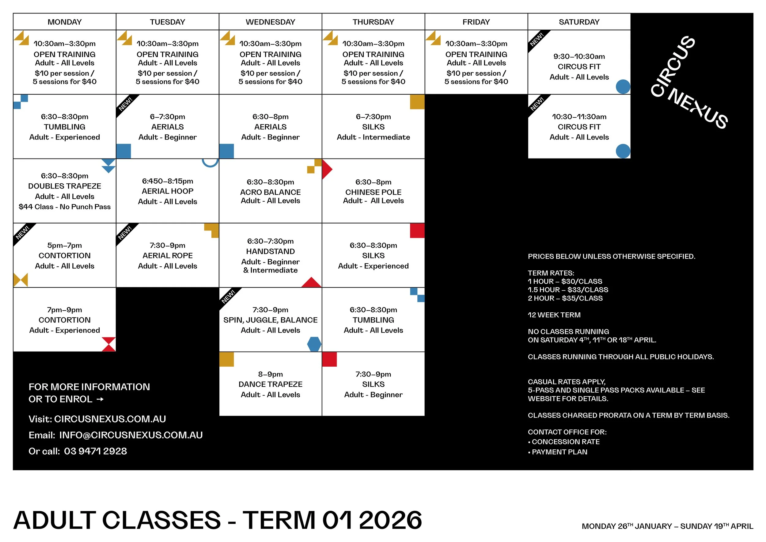 Term 1 2026 Timetable Book Pre-school Classes here Book youth Classes here Book Adult Classes here Explore Youth Classes Here Explore Adult Classes Here